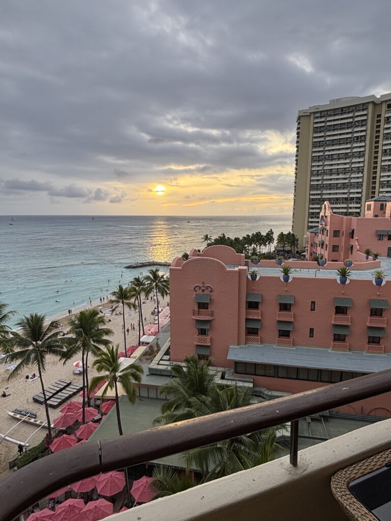 この時にちょうどロイヤルハワイアンから部屋の準備ができたとメールが来たので、ホテルに向かいました。